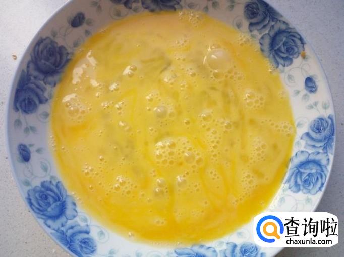 鸡蛋打入盘中,搅拌成鸡蛋液。