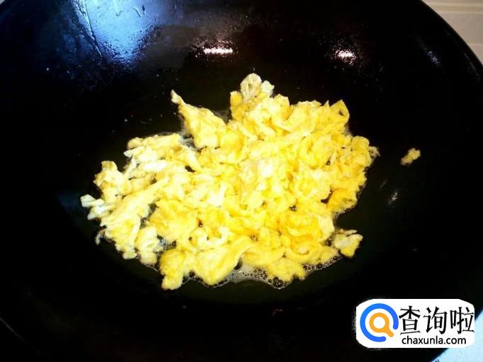 用锅先把鸡蛋炒出来,炒至八分熟,盛出备用。