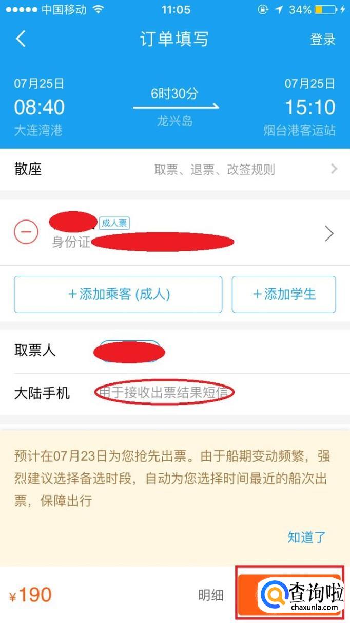 点击“立即预约”,支付船费即可完成预定。届时凭身份证即可验票上船。