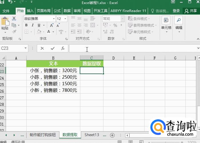 注意:函数公式中对应的单元格为实际文本所在的单元格。