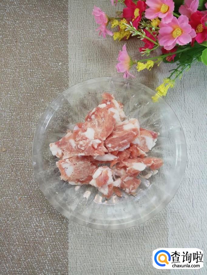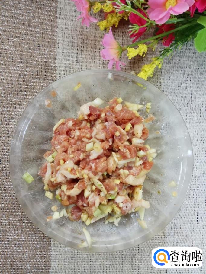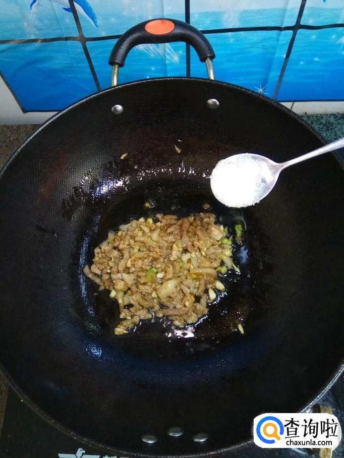 准备适量猪肉,洗净后切成丝,然后准备适量姜和蒜,洗净后切碎,和猪肉放在一起,加入适量盐,鸡精,五香粉,生抽,料酒,淀粉,搅拌均匀,腌制15分钟。