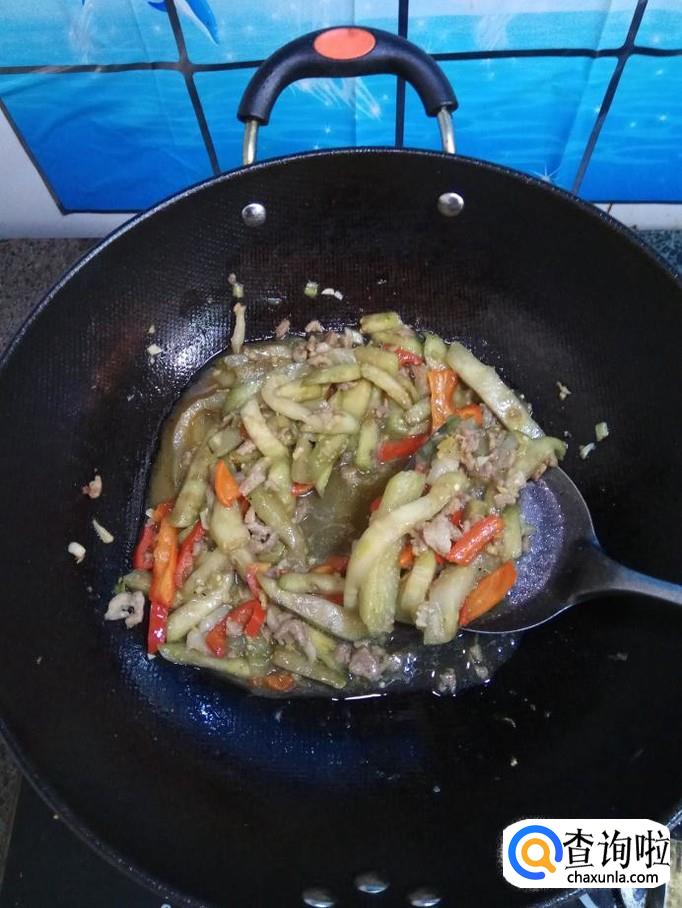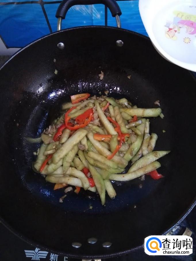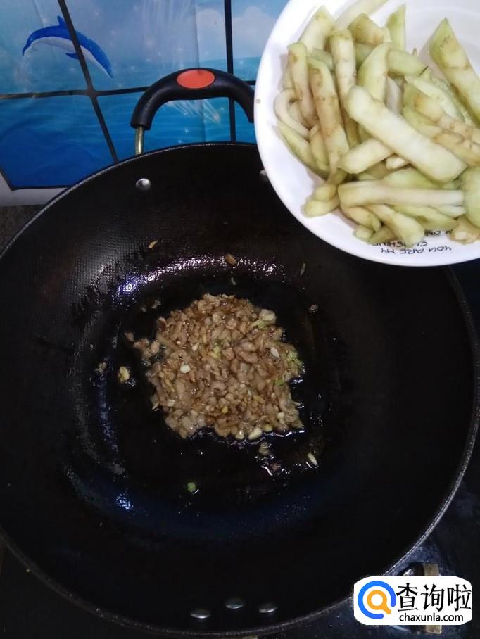 茄子适量,猪肉适量,红椒适量,姜适量,蒜适量,小葱适量,盐适量,鸡精适量,五香粉适量,生抽适量,白砂糖适量。