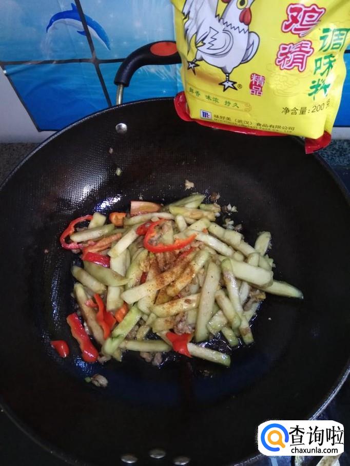 根据自己的口味,放入适量五香粉,鸡精,生抽,因为五花肉和茄子都已经放过盐了,就不用再放盐了。