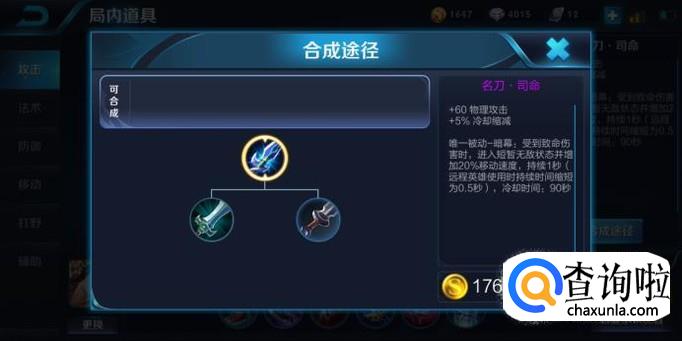 当然,因为贤者庇护的被动,在冷却期间我们可以将它卖掉换成另一件保命装备——名刀司命,+60物攻击和+5%冷却缩减,被动暗幕,受到致命伤害时,进入短暂无敌状态并增加20%移动速度,持续1秒,有90秒冷却时间。增加马可波罗的生存率。