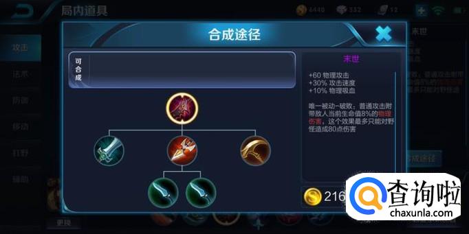 马克波罗是需要攻速才能打出伤害的,所以就需要以下这件核心装——末世,不仅+60物理攻击还+30%攻击速度和+10%物理吸血。并且马克波罗一技能能触发末世被动,前排都扛不住他的伤害。