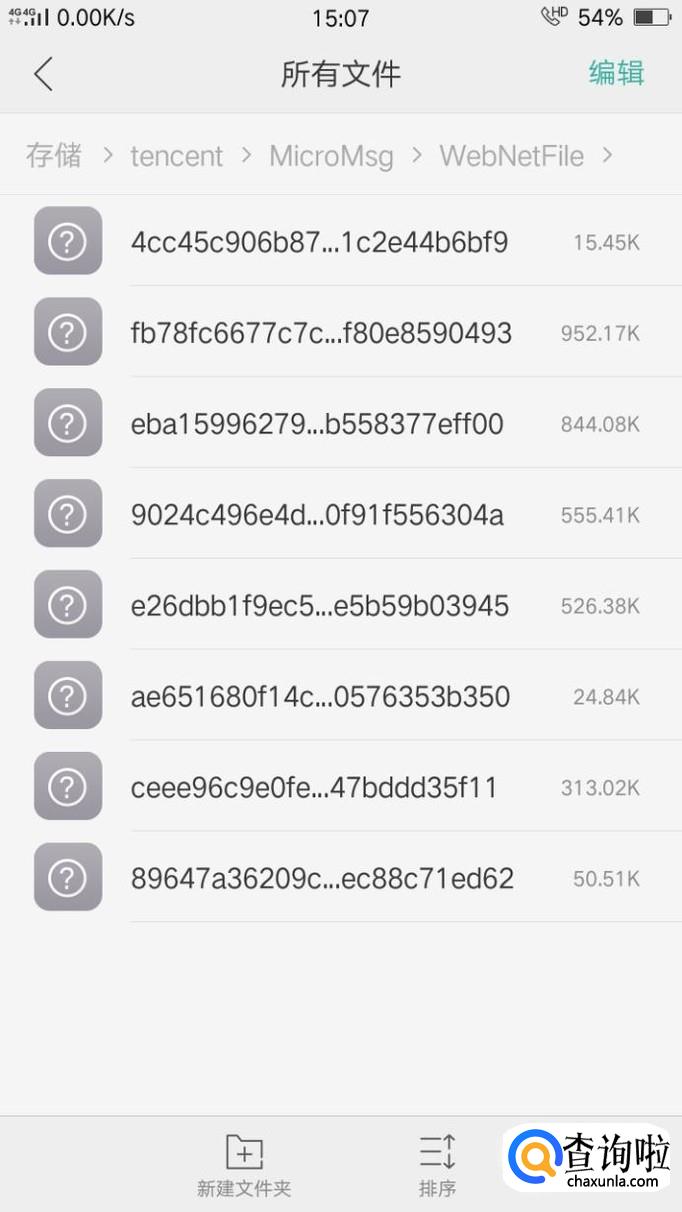 点开第一个文件夹(微信),进入之后更改排序,按时间排序,排除空文件,之后点开文件查看第一个即可,因为已经设置为按时间排序。