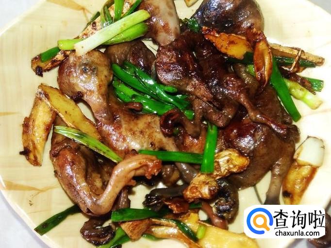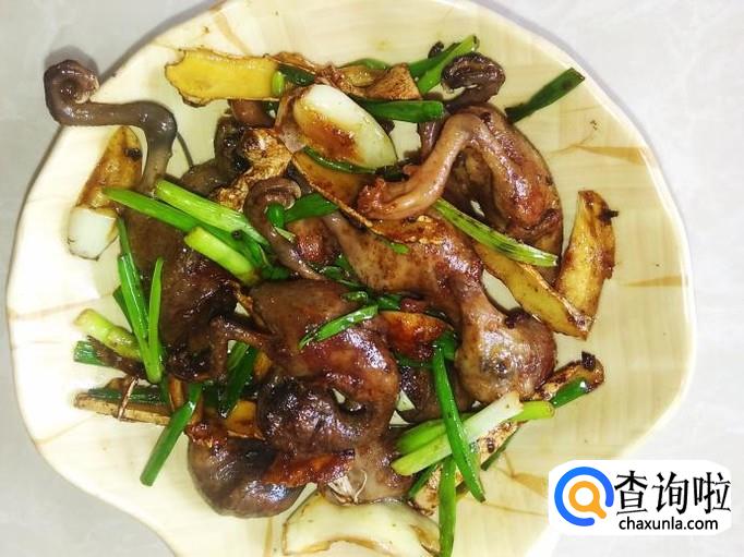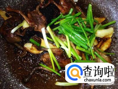然后打开盖子放香葱进去翻炒均匀,熄火。香喷喷的乳鸭就做好了。