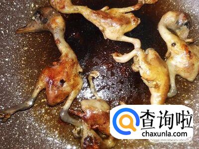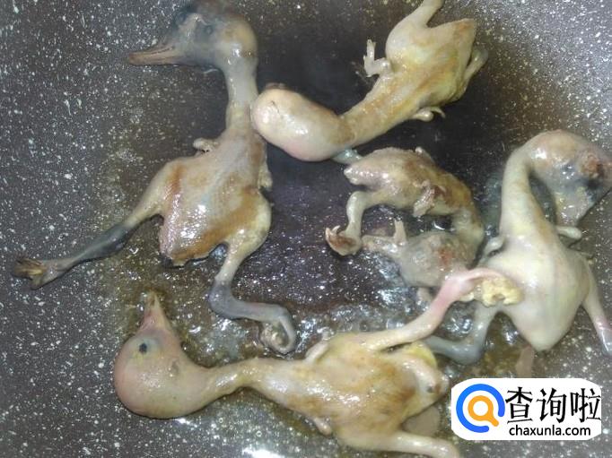 中火炸煎,炸煎至乳鸭两面金黄色。