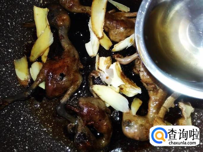 屈头蛋里的乳鸭5只,姜片、蒜米、香葱适量,1勺生抽、1勺料酒。