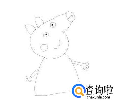 再在小猪佩奇的头部下面画出它的身体,如图所示: