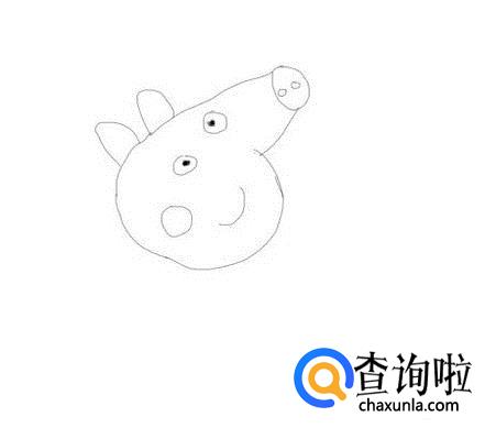 再在头部上画出小猪佩奇的两只耳朵,然后在鼻子上画出鼻孔,并再在面部上画出小猪佩奇的眼睛和嘴巴,如图所示: