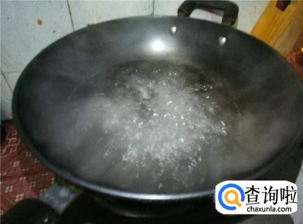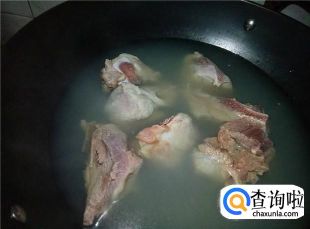 锅里烧开一锅开水,然后把清洗好的扇骨放水里烫两分钟,去掉血水,再捞起来。