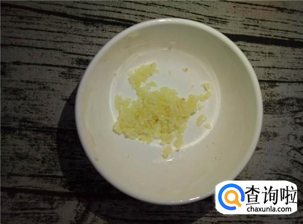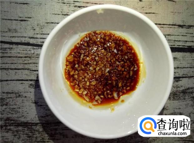 准备两颗蒜头,去衣,剁碎,再加入适量的盐、酱油、花生油,调制成一个调味料,可以用来沾着莲藕和扇骨吃。