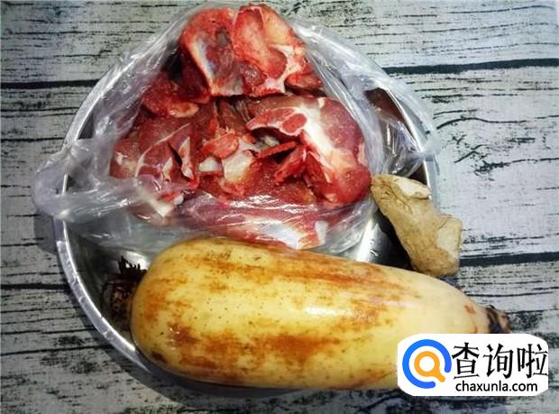 准备好所有材料:莲藕一节、扇骨两块、姜适量