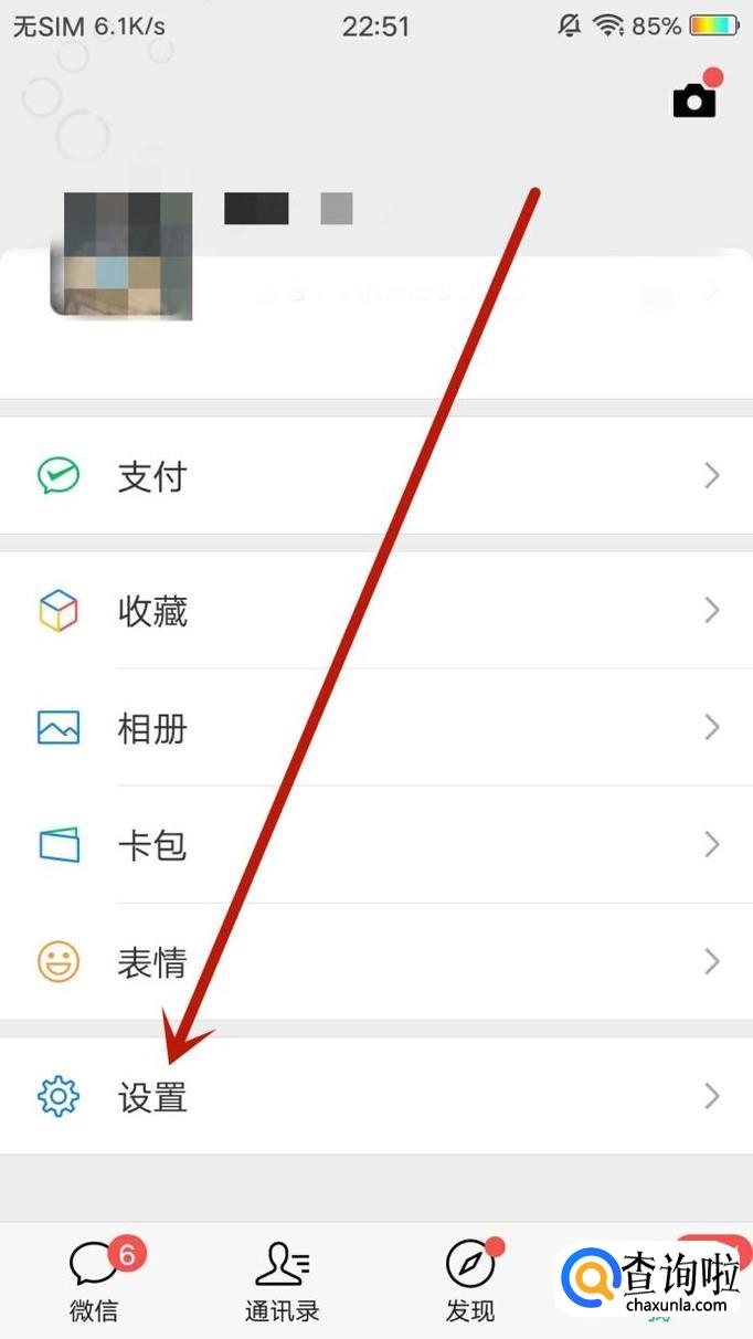 打开微信“我”页面,用笔或者备忘录记下我们的微信号,然后点击“设置”,进入下一页面,如图所示。