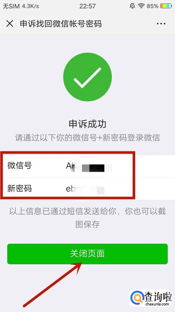 点击之后,即可收到申诉成功的消息,然后用微信号和新密码登录微信,如图所示。