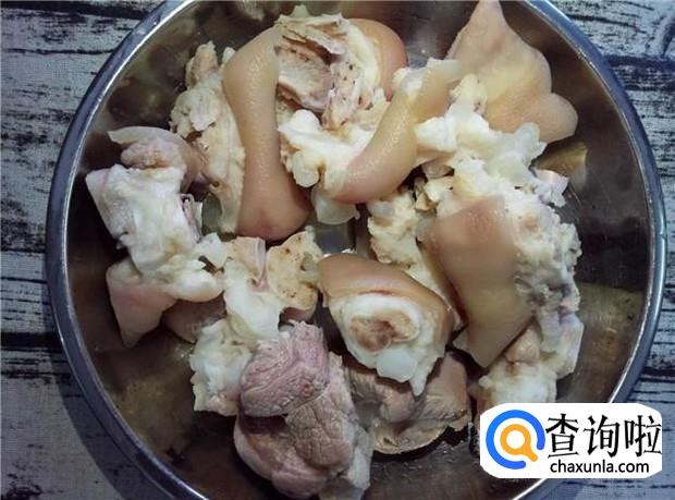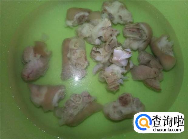 清洗好的猪脚,可以看到猪皮上都很干净的了。