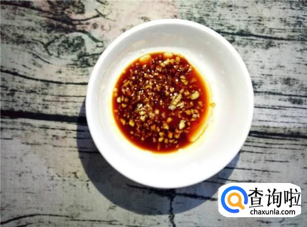 蒜头两瓣,剁碎,加入适量的盐、酱油、花生油,调出一个沾猪脚吃的酱料。