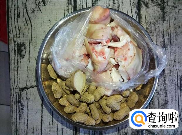 猪脚已经是切好的,家里的刀不够锋利,切不了猪蹄;花生是自家种的,煮出来的花生很新鲜,香甜香甜的,不要用存放太久的花生。