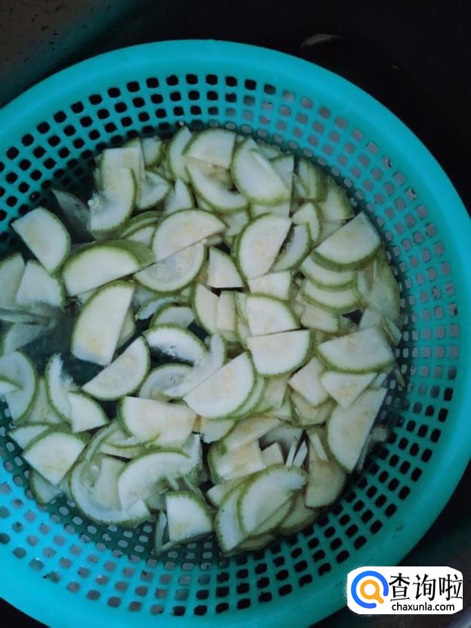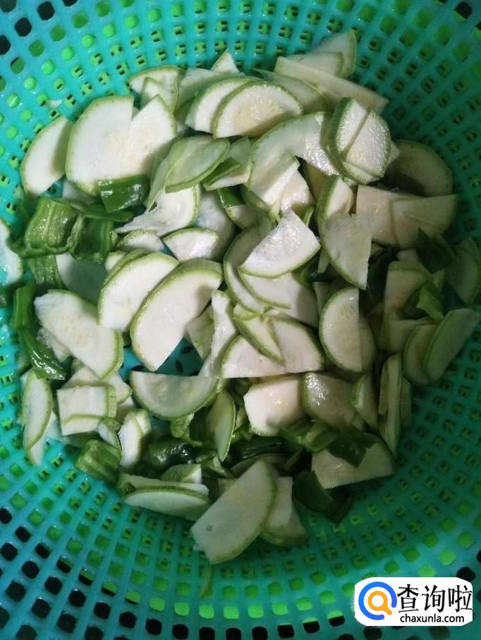 将西葫芦切成圆片状,放在菜篮里洗净。辣椒洗净,切成块状。