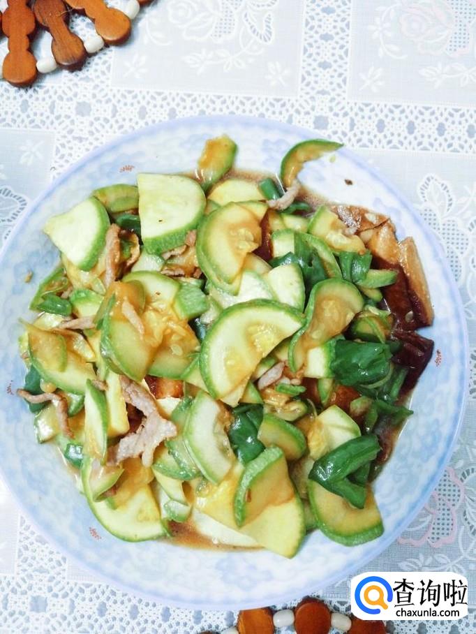 两分钟后,一盘清爽可口的美味西葫芦片炒肉丝就完成了。