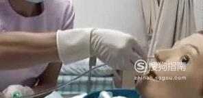 胃管润滑好后,下面就是进行插胃管的操作了,右手持胃管的前端,从患者的一侧鼻腔插入,再送入胃管喉部的时候嘱患者进行吞咽的动作,使得胃管顺利的进入食管,右手快速的将胃管送到胃部(左手做记号的地方)。