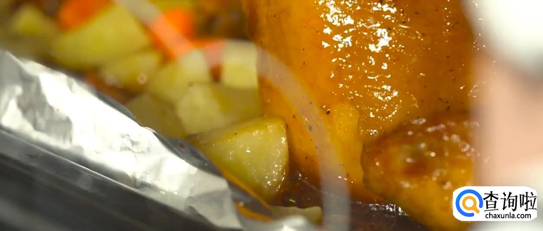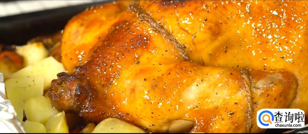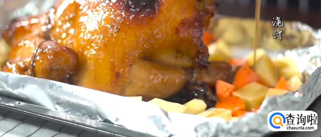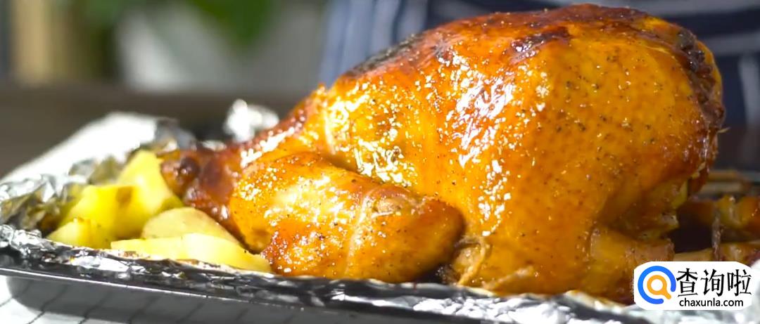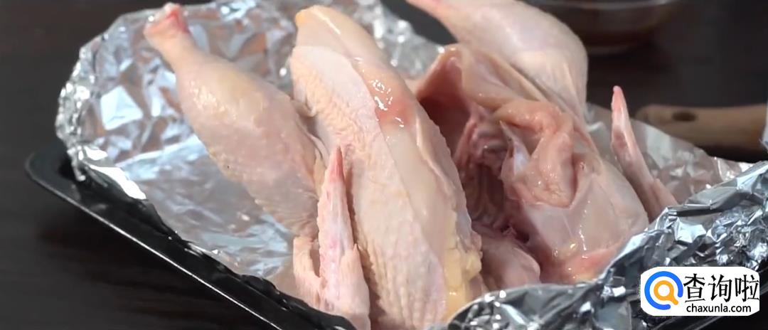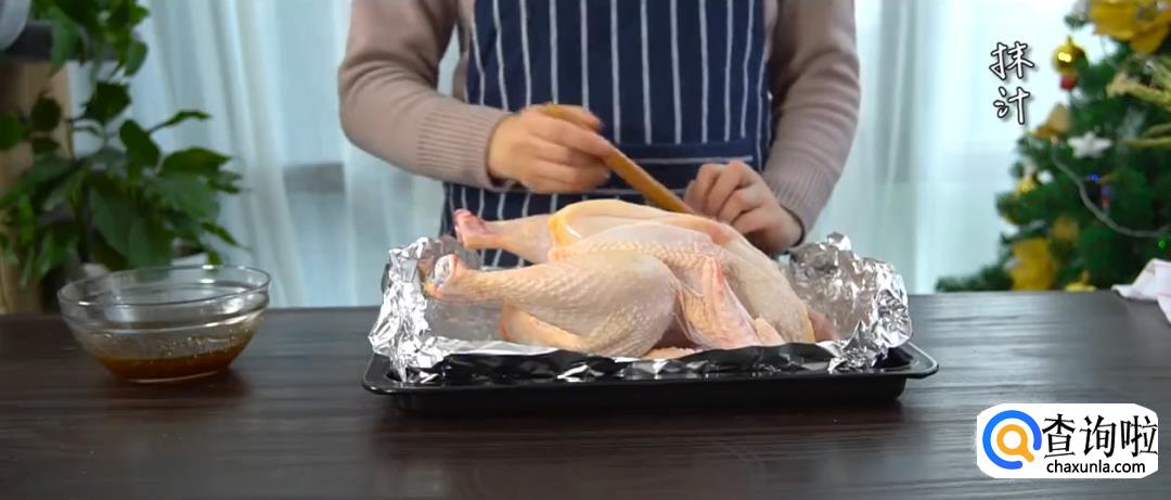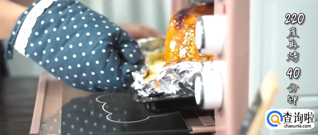 烤箱预热220度,放入烤鸡烘烤20分钟。