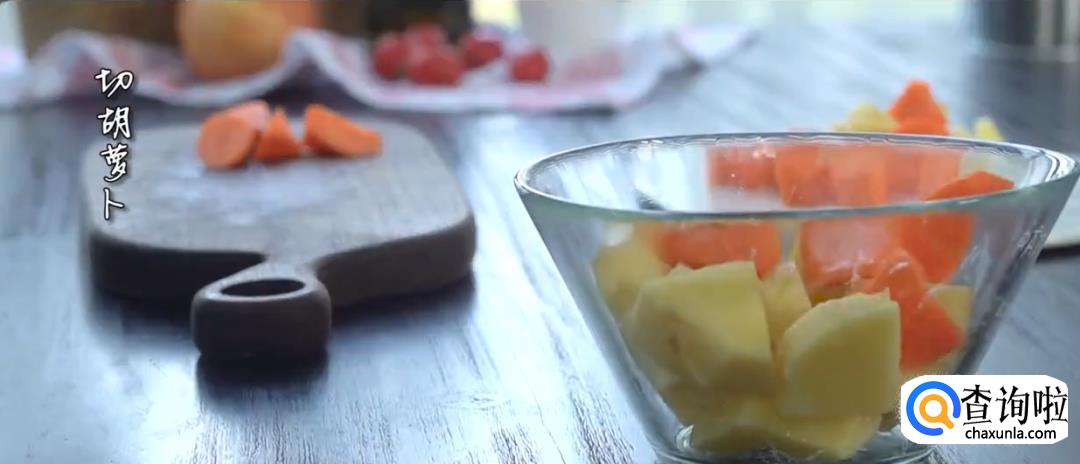 土豆,胡萝卜切块,芦笋切段,准备好各种调料。
