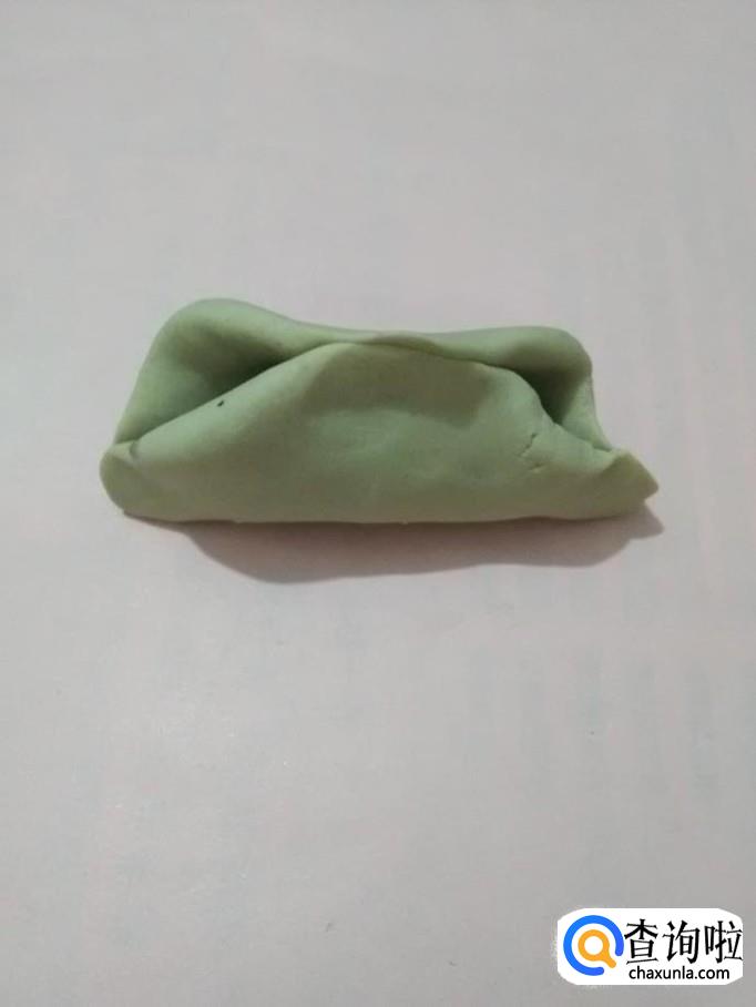 将面皮的下面往上对折,和上方的边缘捏在一起。
