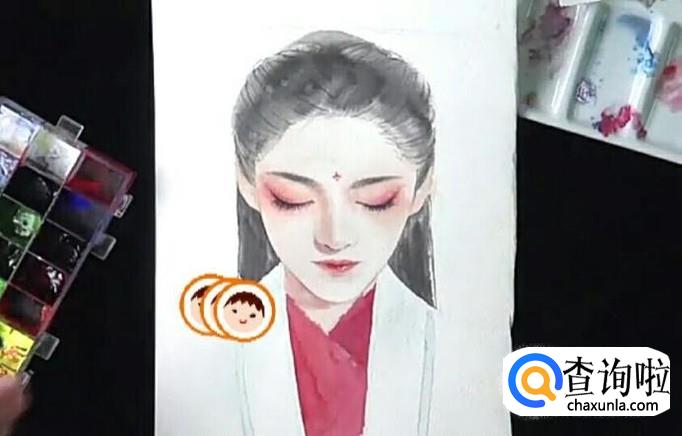 适当加深一下各处的颜色,让水彩画看起来更加协调,不可出现一处颜色太深而另一处颜色过淡的情况,还可以根据自己的喜好在眉间画一朵小花