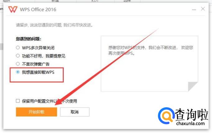打开弹框之后,选择图示位置,点击“开始卸载”即可,如图所示。