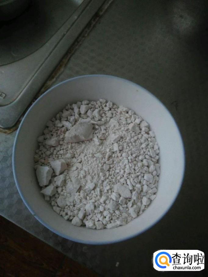 取适量红薯干粉,用适量水先把红薯粉化开,搅拌一下让疙瘩完全溶解开,如有残渣用网子滤一下,准备好待用。