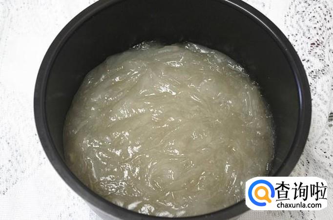 点火开始熬制红薯粉,用铲子或勺子在锅里不停搅动,以防粘锅低,随着温度上升快速搅动,直到红薯粉完全变成透亮的团状,就可以关火了。