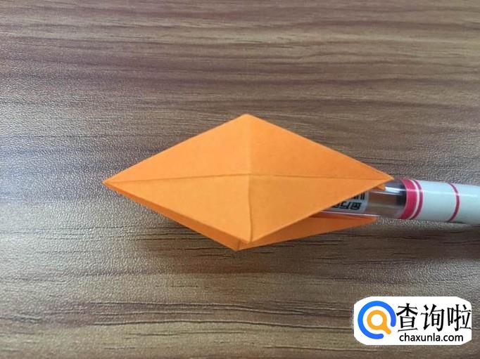 四个面全部撑起后,将顶点向内压折。花瓣的叶子就出来了。