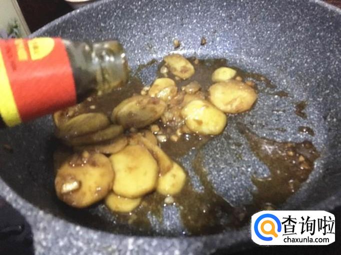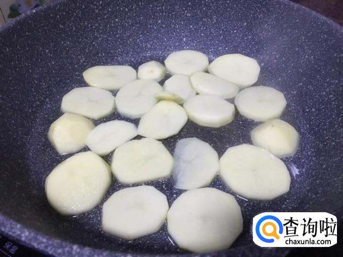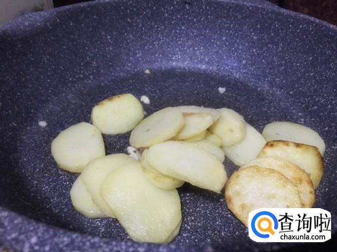 锅中倒入适量油,土豆倒入煎至两面金黄之后捞起备用