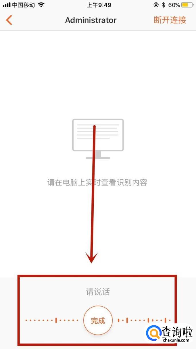 接着点击屏手机屏幕上的说话按钮,如下图所示。