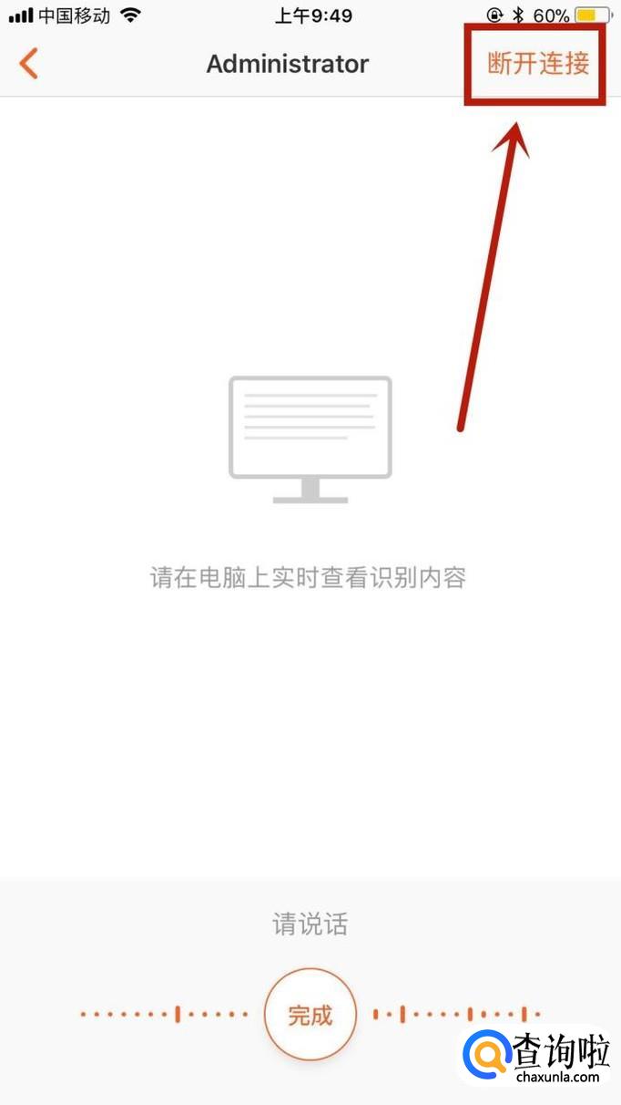 如果如果你想断开两者之间的联系的话,可以点击手机上方的断开连接就可以了,如下图所示。