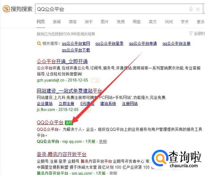 进入之后,搜索“QQ公众平台”,点击并进入,如图所示。