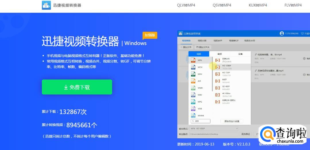 然后选择一个qsv视频格式转换器,点击“免费下载”,如图所示: