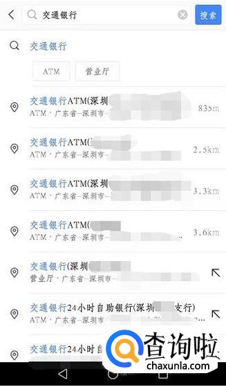 还有一种方法是,打开手机上的地图软件,你输入交通银行之后,地图会自动帮你搜索离你那里最近的营业点或者有ATM机的地方。