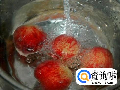 将全部的毛桃都挨着这样搓一搓,然后浸泡在水里面十分钟。