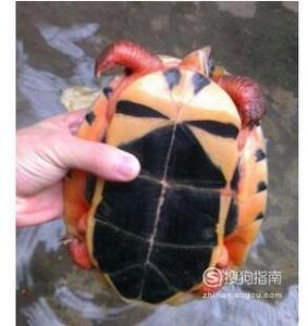 越南种金钱龟的背部颜色也呈现红色,因此,从背部颜色可以很容易判断出来。