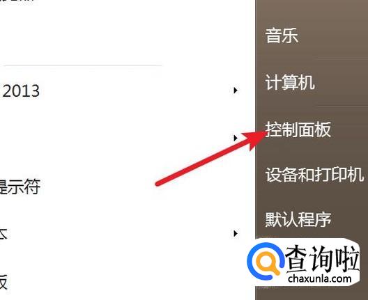 点击开始菜单,然后点击上面的‘控制面板’
