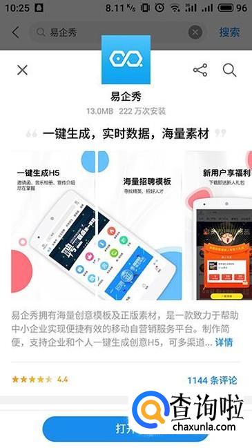 要想制作H5招聘海报的话,在应用市场上搜索“易企秀”下载安装。