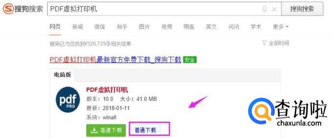 我们先安装虚拟打印机软件,我们在浏览器上输入“PDF虚拟打印机”,如图。