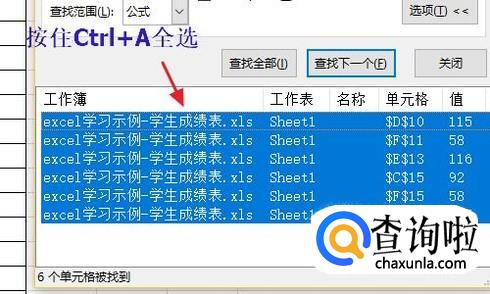 这样表格中所有红色区域的单元格就被选中了,对话框的下方有显示,按住Ctrl+A将这些单元格全选,如图所示...