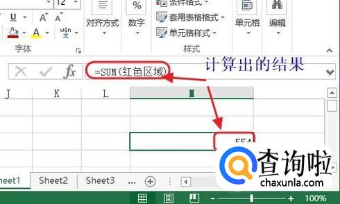 点击确定关闭这个窗口,然后我们在表格中任意一个空白单元格输入公式“=SUM(红色区域)”,这样即可快速计算出这些红色单元格的和了;