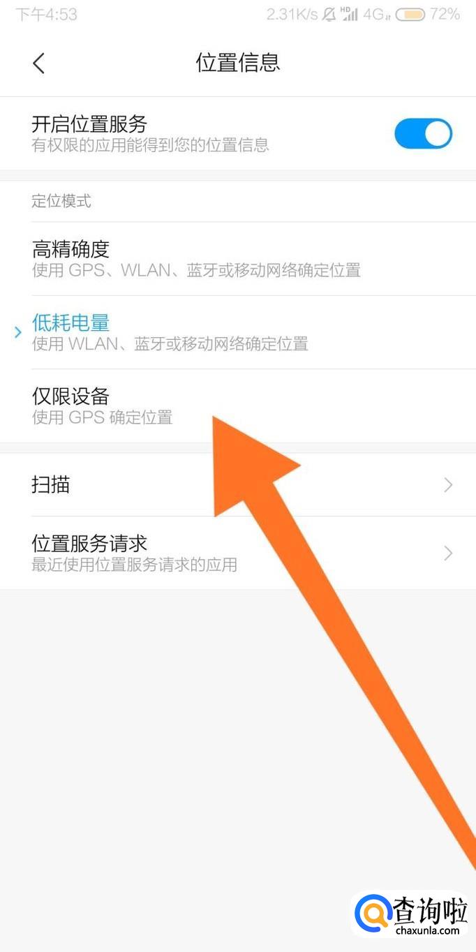 打开“开启位置服务”功能开关后,即可设置小米手机使用GPS定位的功能。