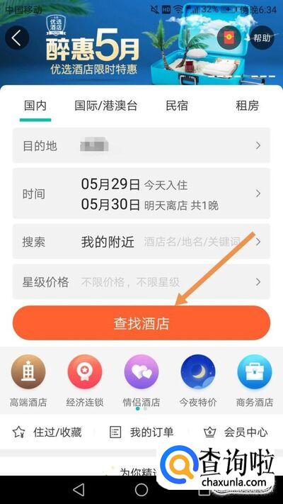 进入住宿后,可以选择你要入住的时间和地点,还可以输入你居住酒店的要求,如下图。