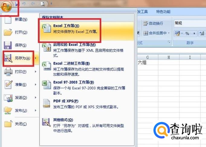然后在“另存为”的下拉菜单中点击“Excel工作簿”。